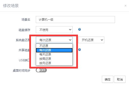 示例:计算机一组教学场景设置的【每次还原】,现在的需求是设置“按周还原”