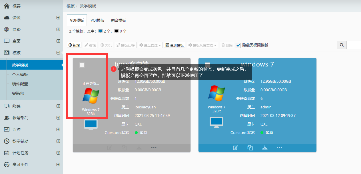 从管理平台上更新VDI模板入门