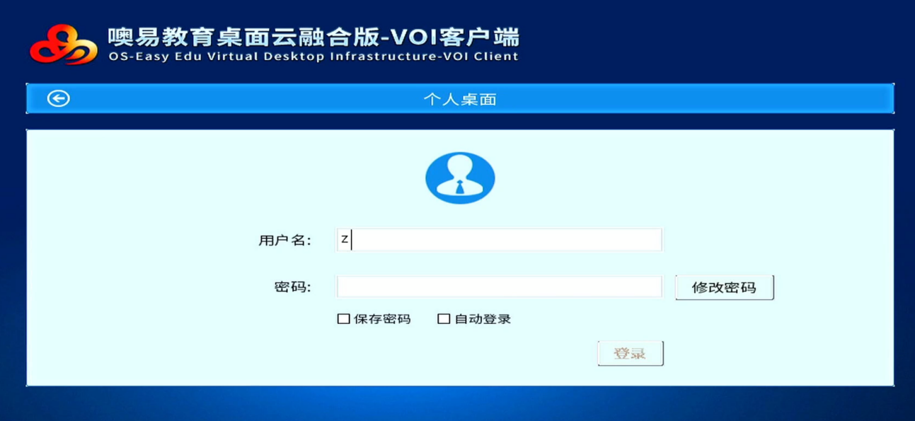 13.打开终端,点击个人桌面,输入与个人桌面绑定的账号及密码