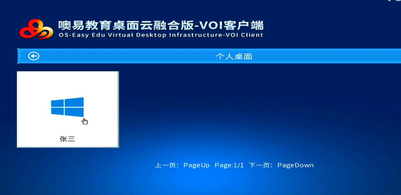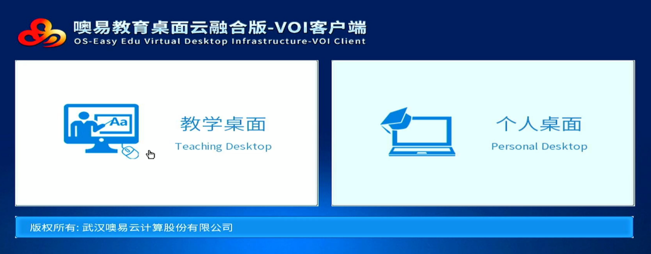 9.待终端状态出现扳手图标时,表示已进入维护模式,点击桌面选择个人桌面,选择VOI桌面