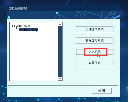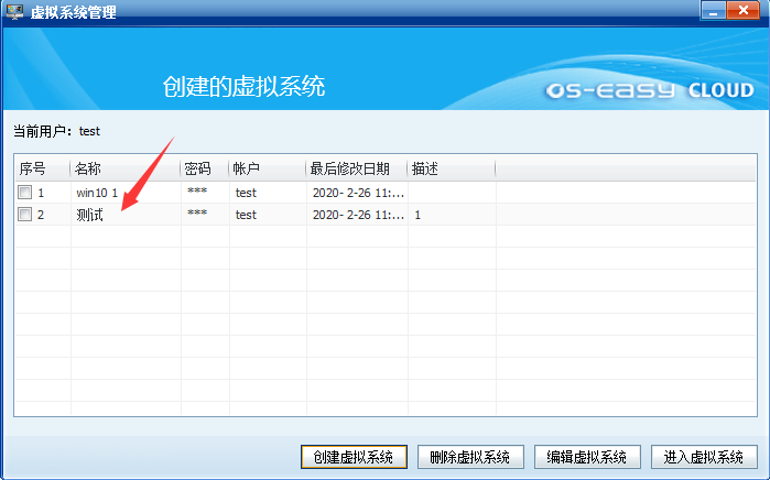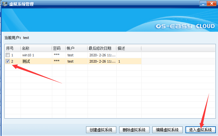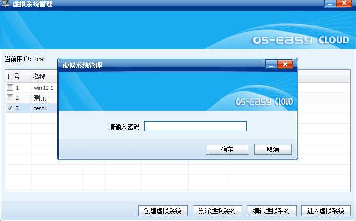 1、鼠标勾选虚拟系统名称,单击【进入系统】键,验证该虚拟系统密码后,将进入选中的虚拟系统。