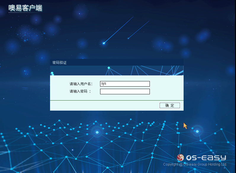 1、在安装好OSS上层驱动后,打开右下角【OSS客户端】,点击【噢易功能平台】一【虚拟系统管理】,输入创建的虚拟系统管理员账号和密码。