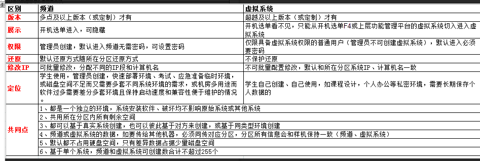 虚拟系统技术是指在操作系统被保护的状态下,给予普通用户在真实系统或频道的基础之上,快速的再次搭建一个独自使用的不保护环境。