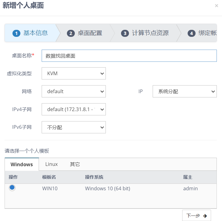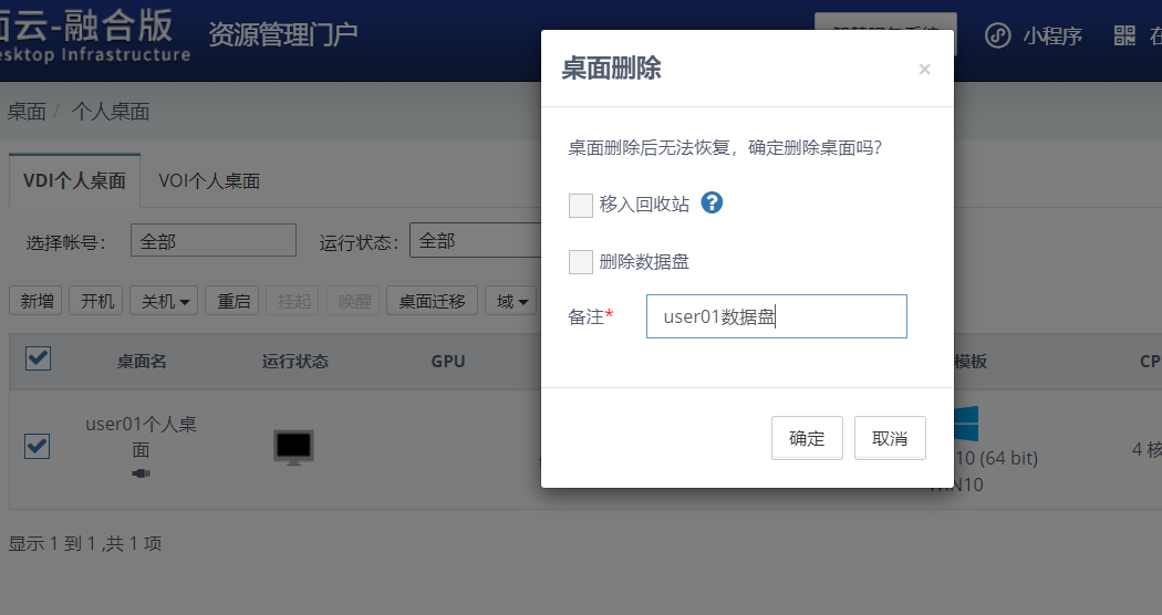 1.先在管理平台上删除原个人桌面,删除的时候不要删数据盘;