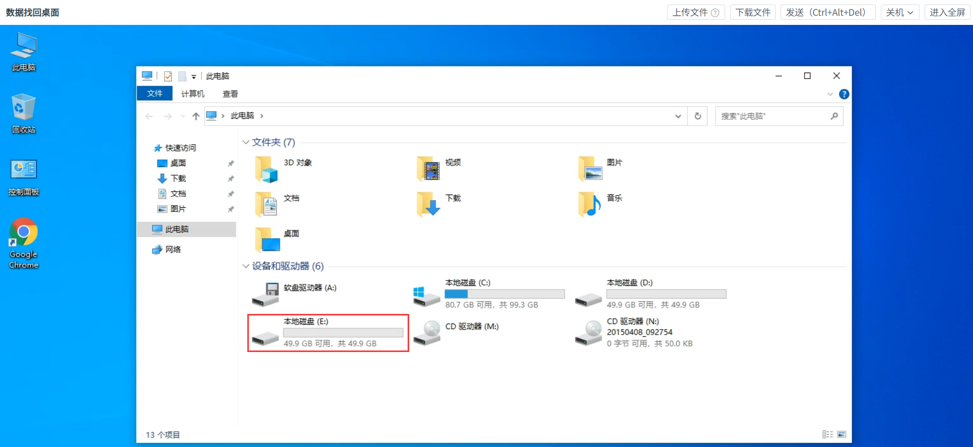 5.桌面开机,可以看见之前的数据盘已经挂载,将数据拷出即可。