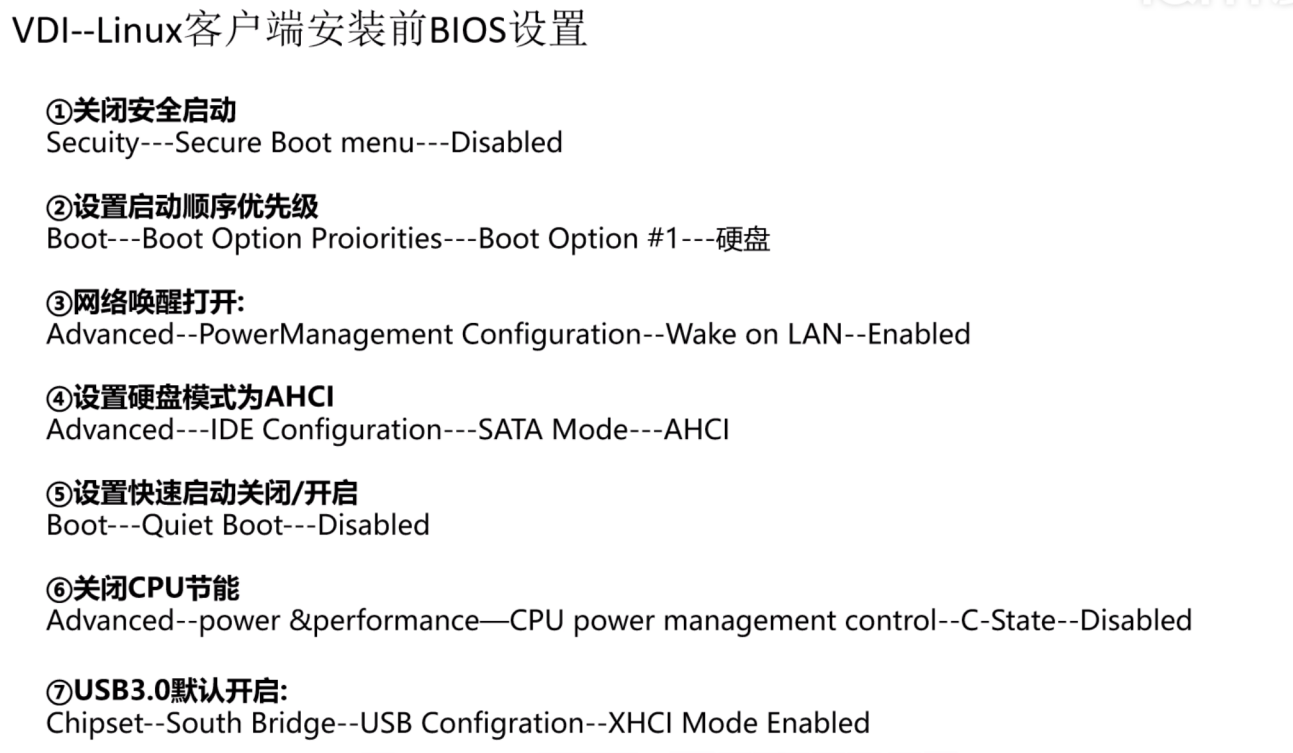 7.将终端开机,按键进入BIOS,按如下要求设置BIOS