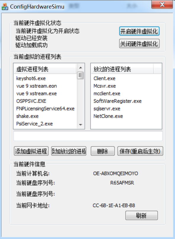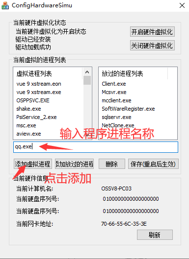 3.软件默认是开启状态,可以手动关闭或开启,如果安装的软件没有被识别,请手动添加软件进程,点击保存后重启机器使其生效,然后使用oss的差异拷贝方式发给其他机器,实现统一注册