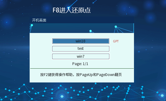 开启后回到oss菜单页面,按【F8】进入还原点管理系统,输入管理员账户和密码进入。