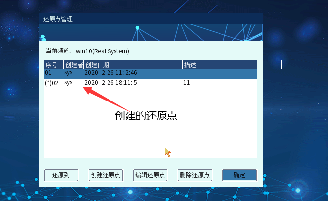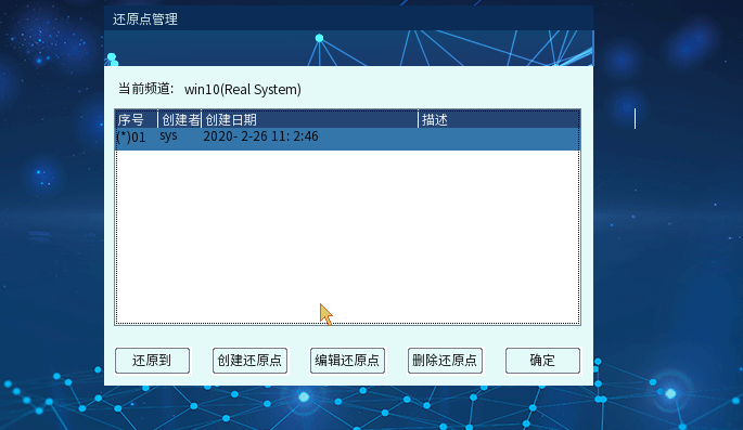 鼠标点选还原点列表,单击【编辑还原点】,出现编辑还原点界面。单击【确定】,所进行的操作和修改都被保存,退出编辑还原点界面,返回【编辑还原点】