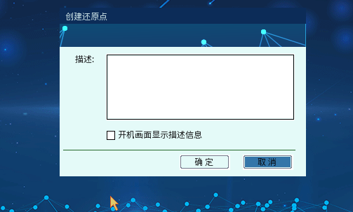 单击【创建还原点】,将以上次进入系统(或频道)的系统状态为基础来为系统(频道)创建一个新的还原点。