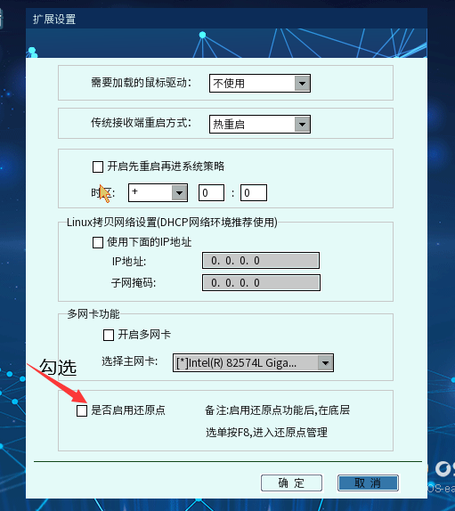在参数设置界面,按Ctrl Q快捷键进入扩展模式,勾选【是否启用还原点】,开启还原点功能。