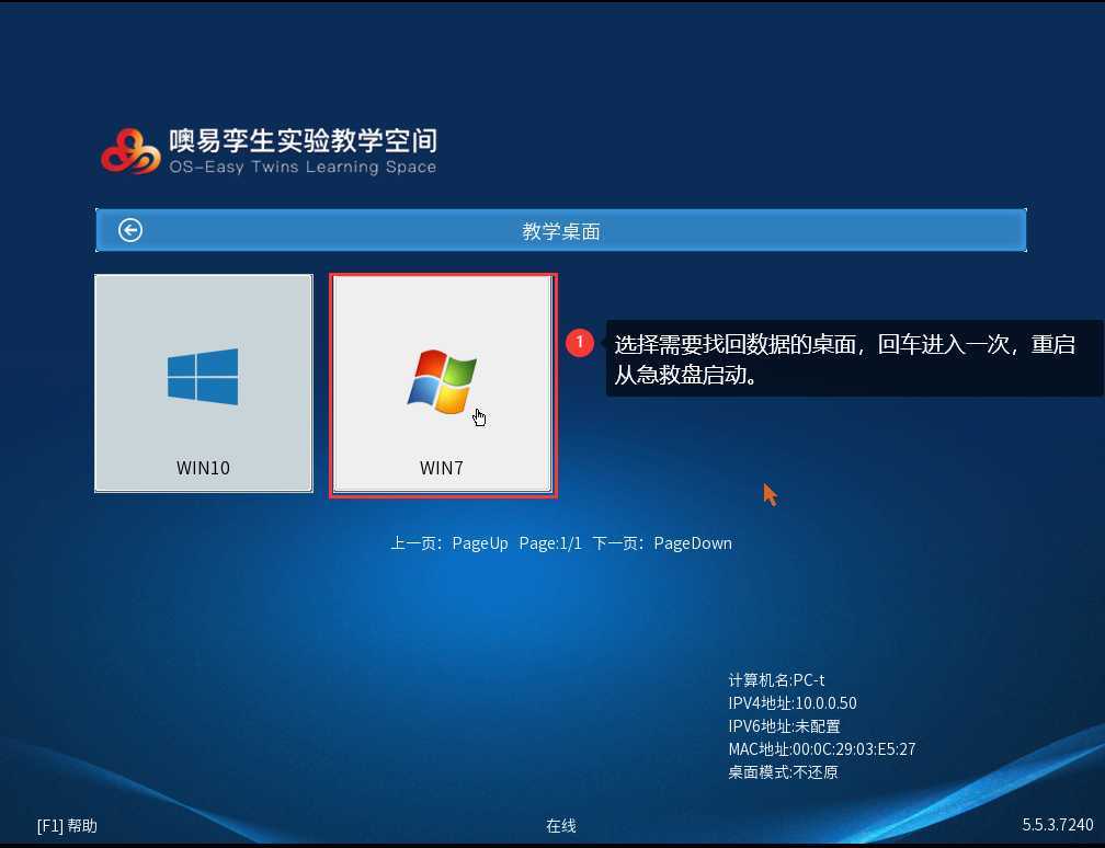 4.急救盘制作完成后,插到需要找回数据的VOI终端,终端开机,回车进入一次需要找回数据的桌面,然后重启从U盘启动。