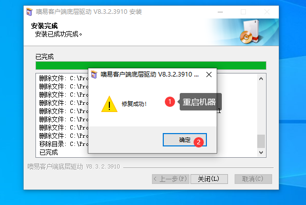 ③ 走完修复步骤,提示“修复成功”即可: