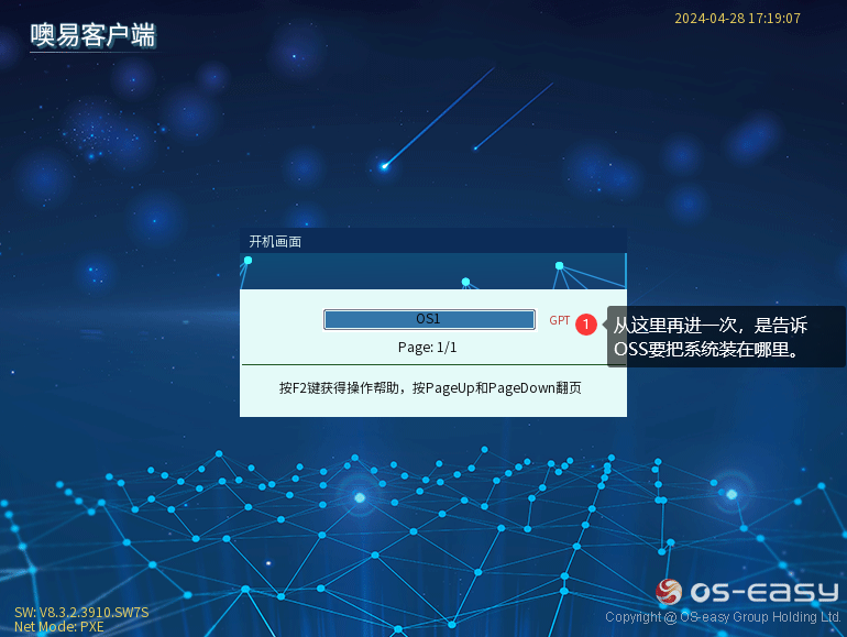 ② 回到OSS选单界面,再进一遍那个操作系统,这一步是告诉OSS您现在需要将新系统安装到哪个分区里:
