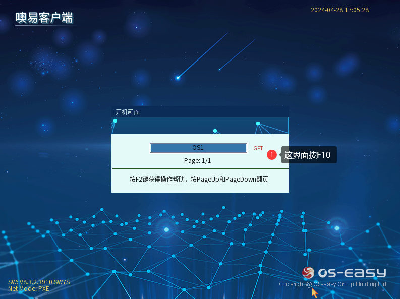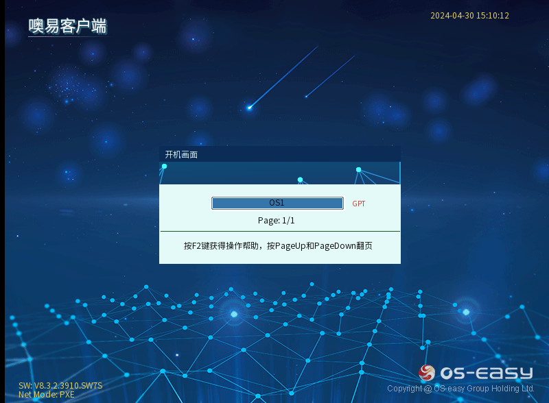 ④ 再重启,开机界面就会出现OSS底层选单界面,然后再去安装上层驱动: