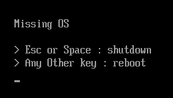 ⑤ 回车后会显示【Missing Os】没有操作系统的提示,是正常的,如下图: