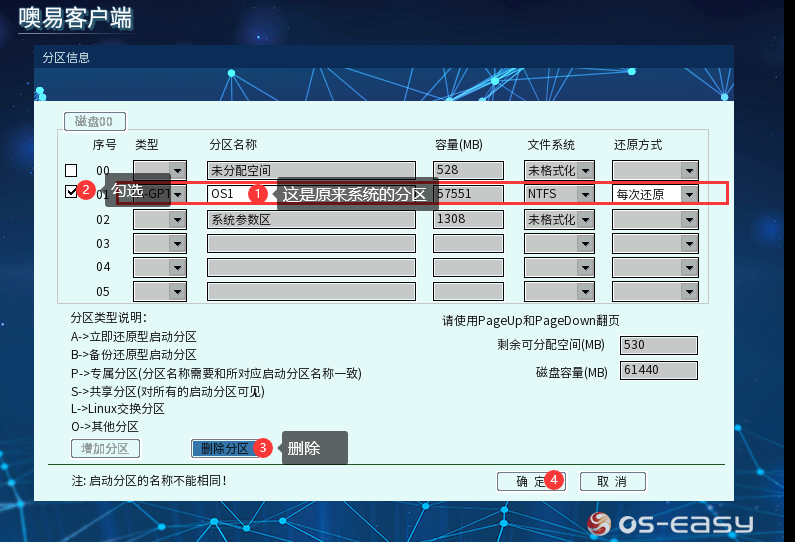新增分区实际上算不得是系统重装,我们只需要在已有的分区情况下,利用OSS所记录的剩余空间去新增一个系统分区,再把系统装在里面即可,具体操作步骤如下: