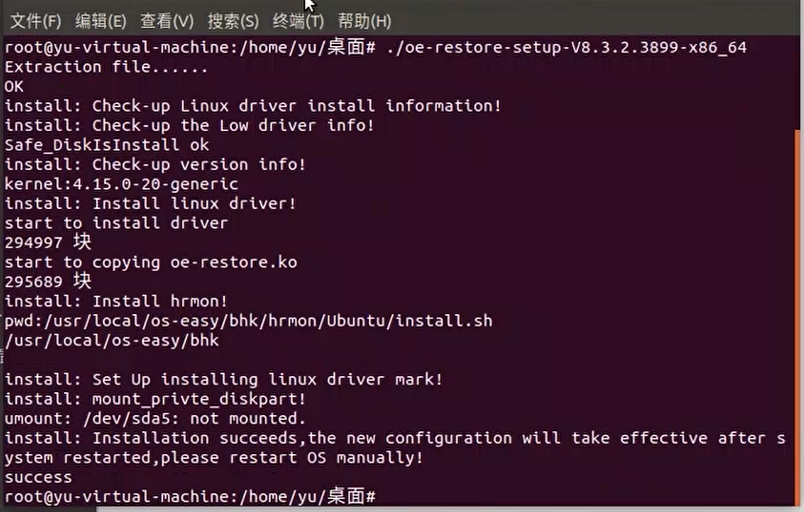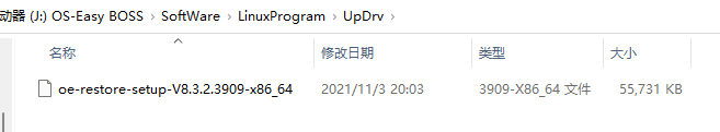 注意:oe-restore-setup-V8.3.2.3909-x86_64为上层驱动文件名,这里只是举例,具体以软件包对应的上层文件名为准.
