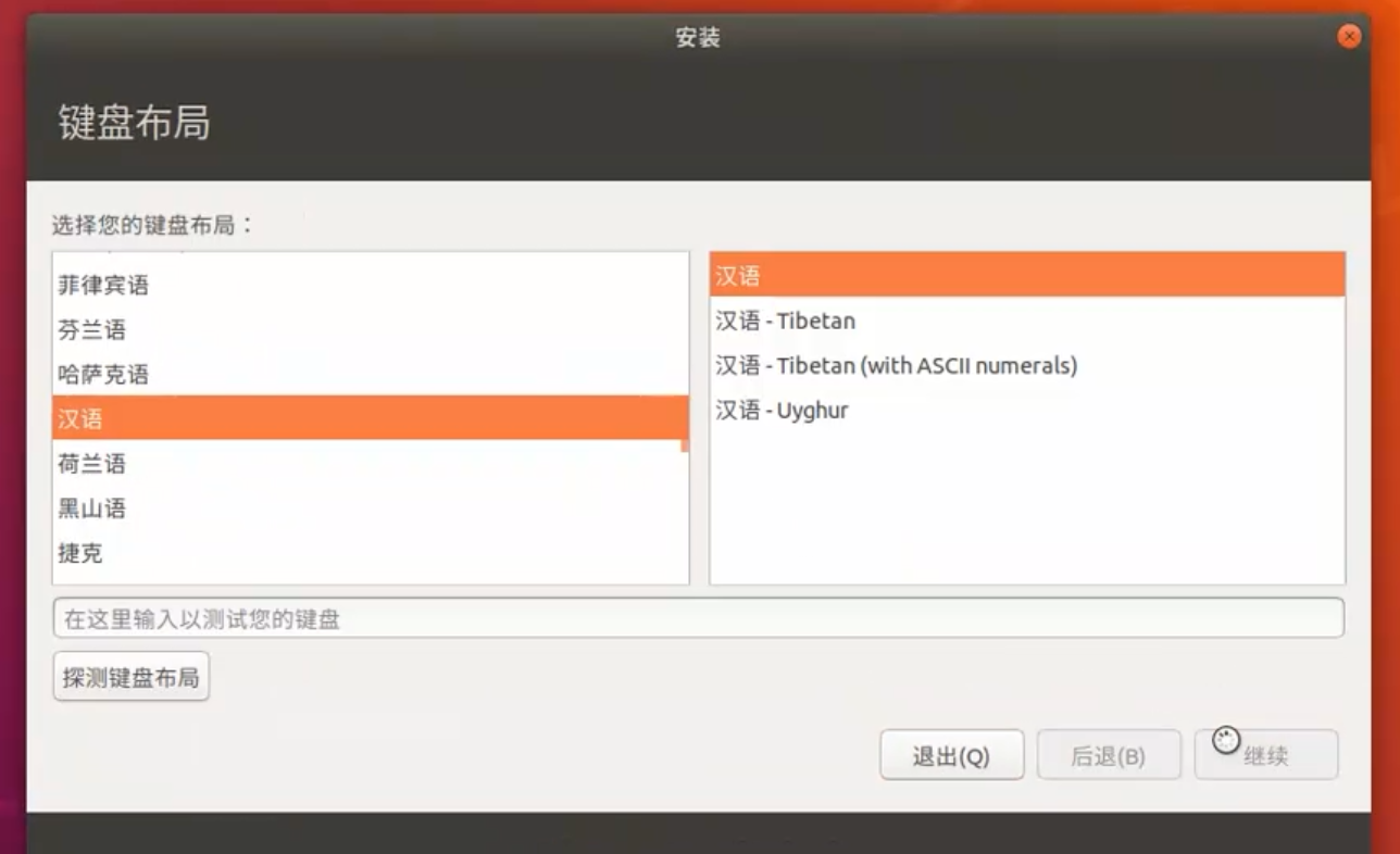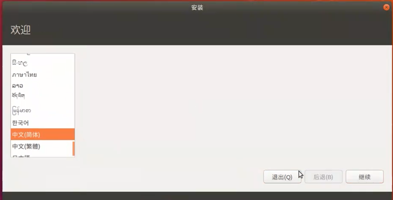3.进入ubuntu安装界面,选择install ubuntu选项进入安装模式.选择中文语言.