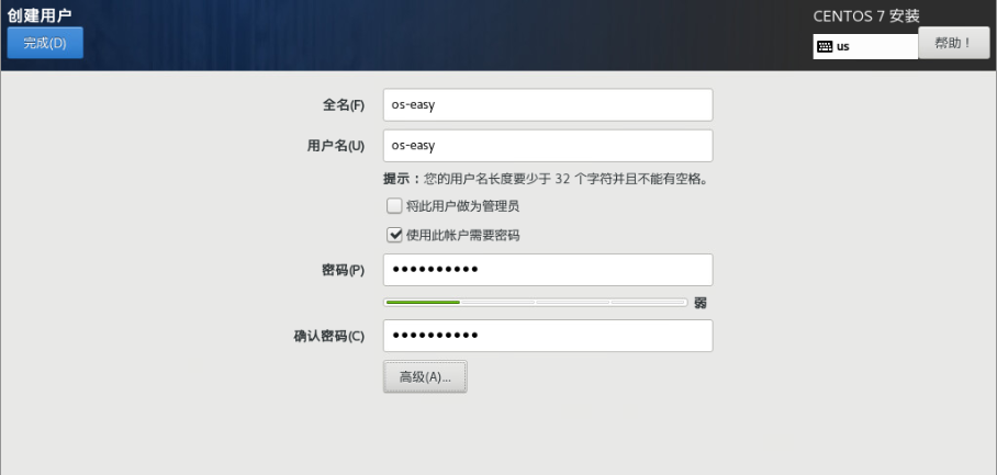 (15)按需求设置用户名,用户名和密码需要自己记住;