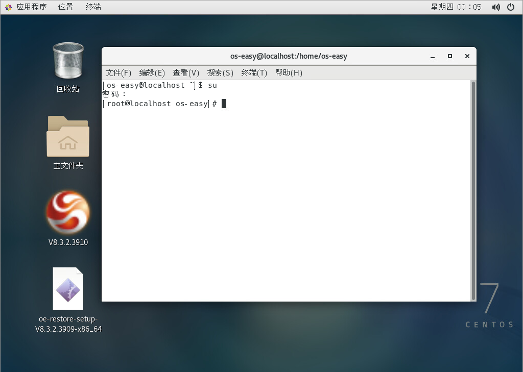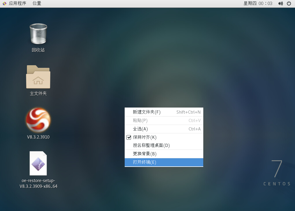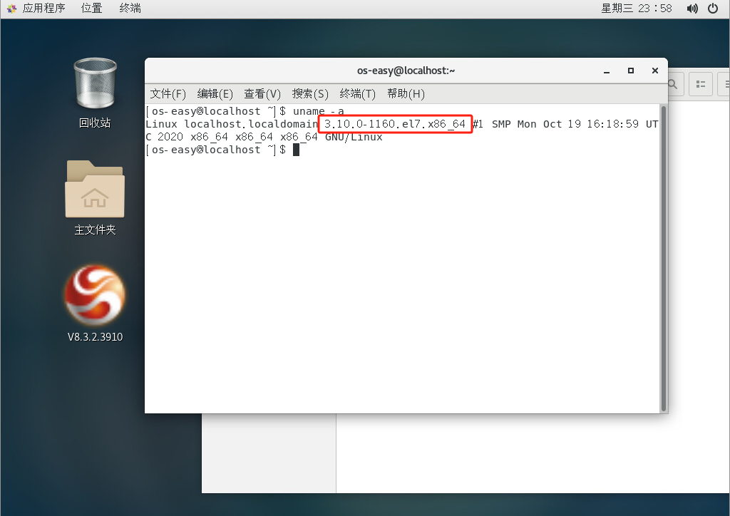 先查看安装的系统的内核是不是在OSS立即还原的支持列表里,打开CentOS的终端,输入uname -a,可以看到内核版本。