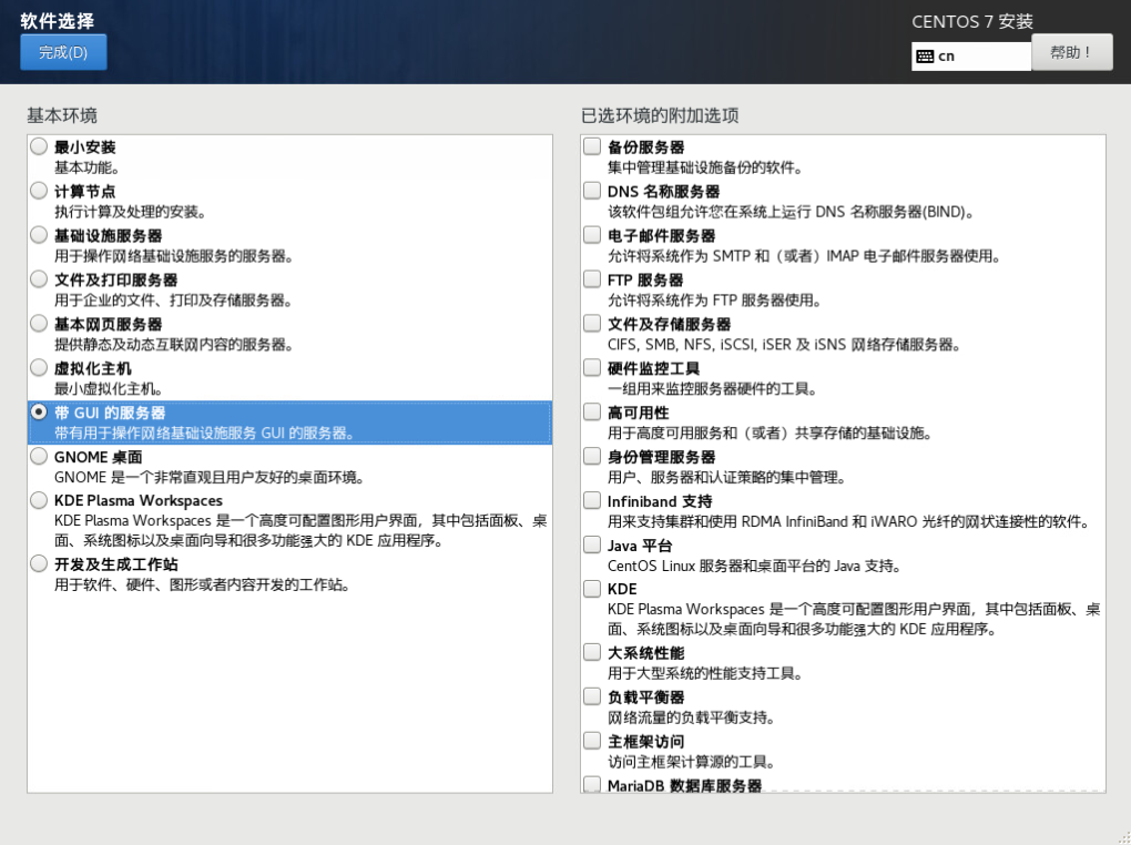 (6)软件安装,选择带GUI的服务器