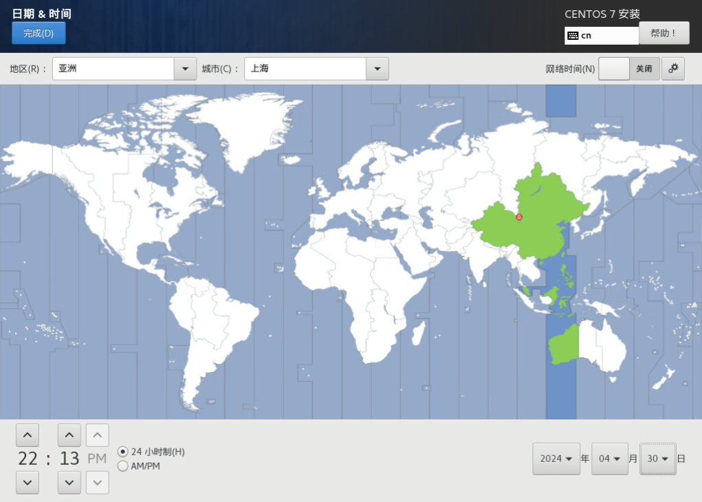 (5)正常安装,日期和时间,选择亚洲上海