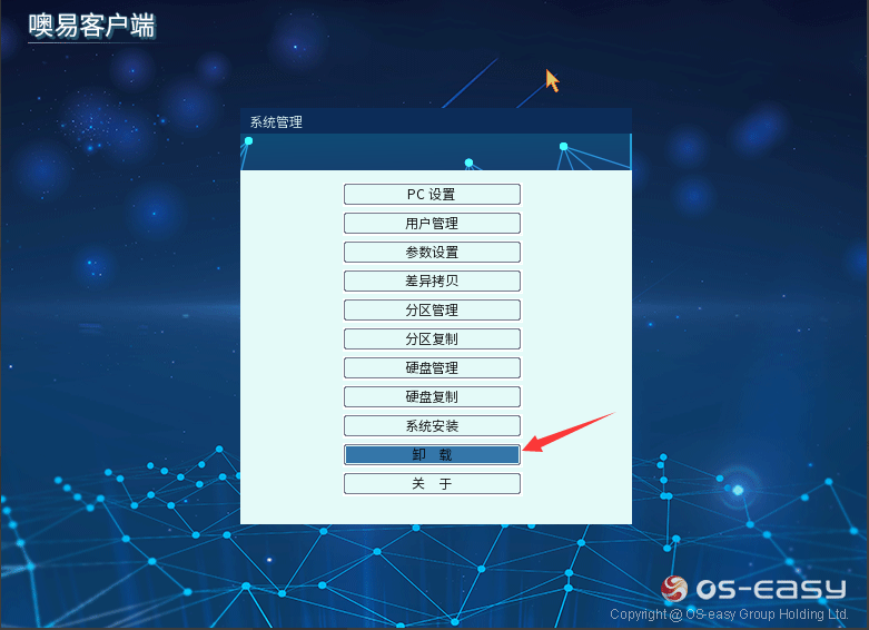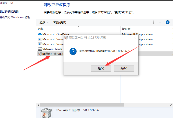 2、然后进系统里,控制面板程序里—卸载“噢易客户端”,如下图所示: