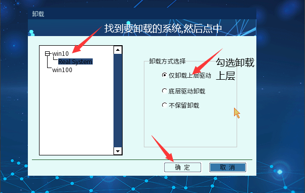 1、找一台要升级的机器开机到底层选单界面,进底层F10--卸载,执行 每个系统的“仅卸载上层驱动”,具体操作如下图所示: