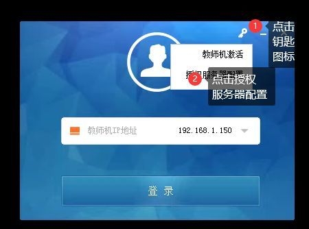 4.点击钥匙图标点击教师机激活。输入默认密码(serverroot,如不正确请联系客服人员)