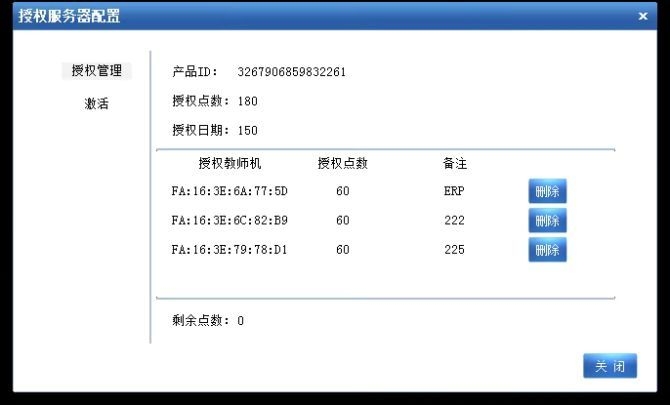 点击删除后,就可以看到剩余点数增加。然后即可激活其他的机器。然后点击关闭。