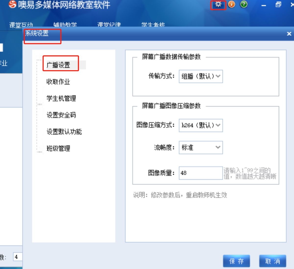 注意:以上调整后需重启教师端程序才会生效。