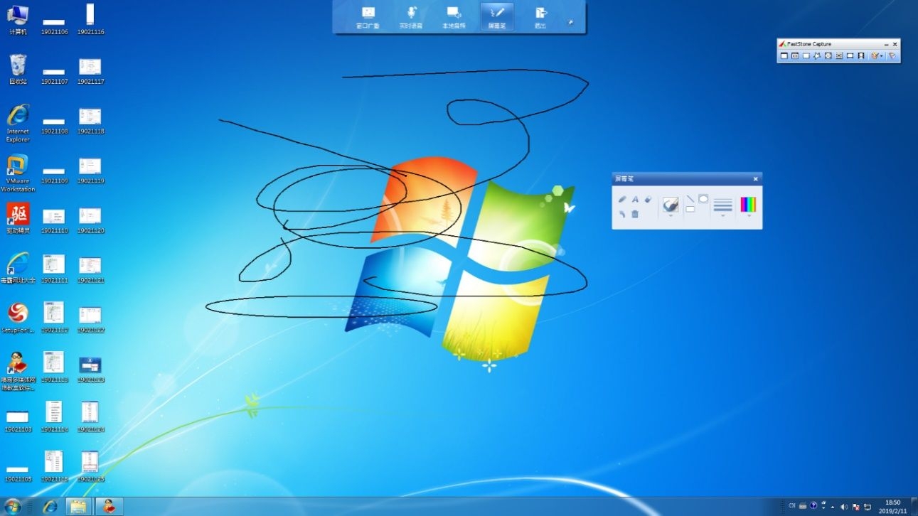 屏幕笔:点击“屏幕广播”悬浮框中的“屏幕笔”控件,教师端将此时的桌面截图作为画板并弹出“屏幕笔”功能框,教师端可以在画板上进行绘制,如图所示。学生端可以实时显示画板上绘制的图案。