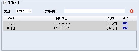 勾选“禁用外网”后学生端将无法访问外网,添加的例外网址或IP地址可正常访问。