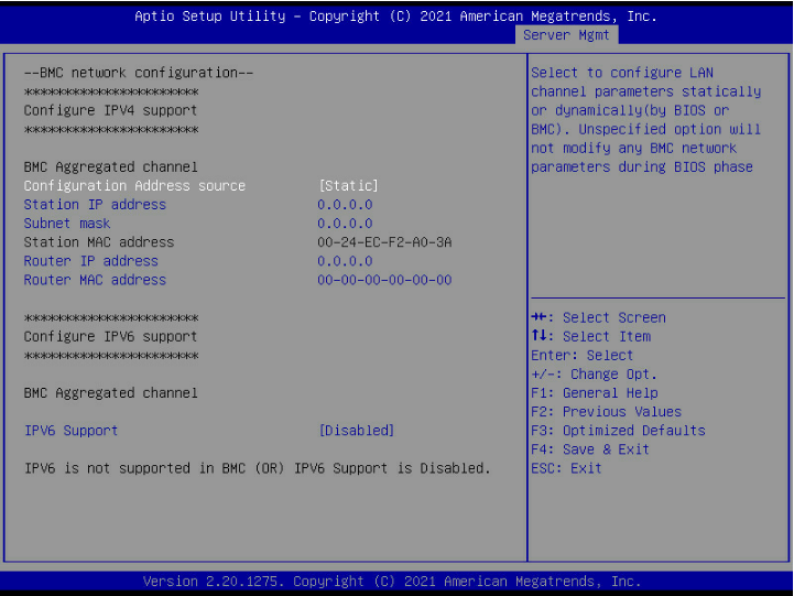 Server Mgmt---BMC network configuration---Configuration Address source---Static