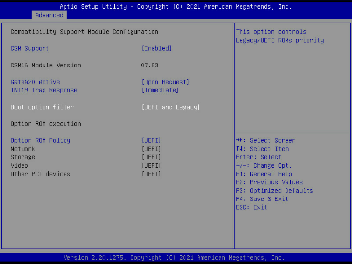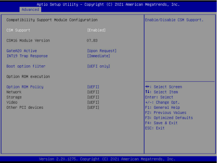 Advanced---CSM Configuration---CSM Support---Enabled