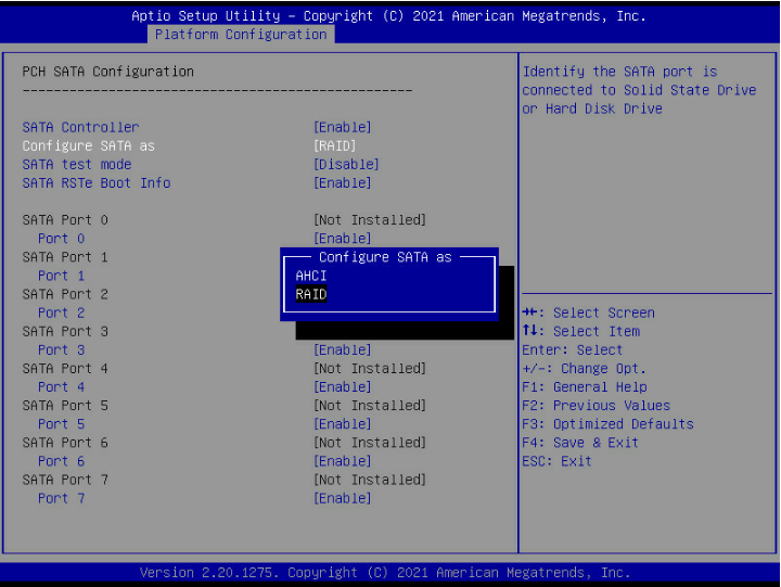 Platform Configuration---PCH SATA Configuration---Configure SATA as---RAID