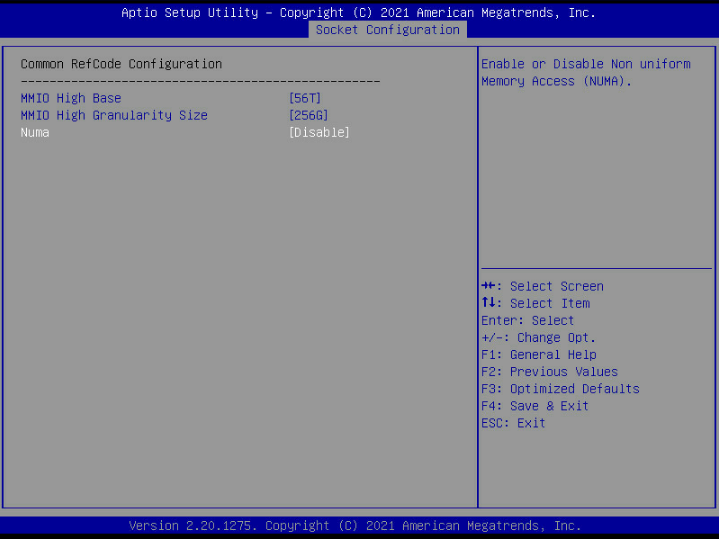 Socket Configuration---Common RefCode Configuration---Numa---Disable