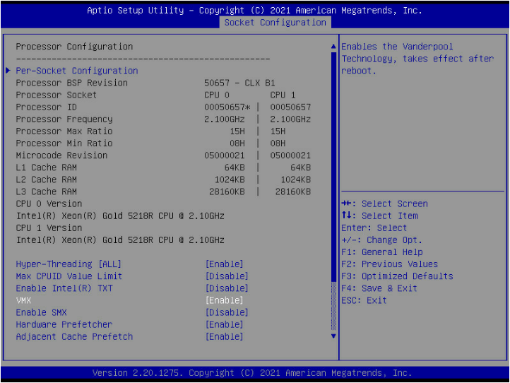 Socket Configuration---Processor Configuration---VMX---Enabled