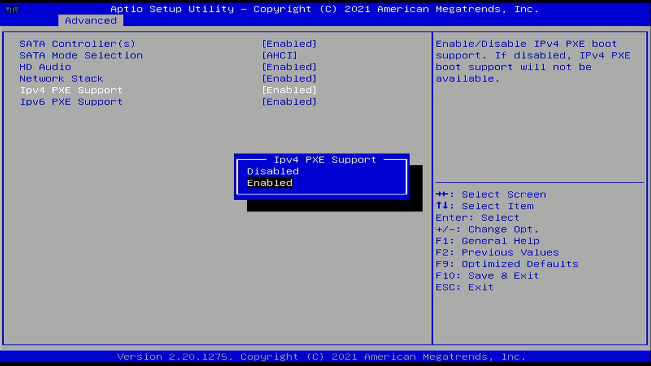 Advanced---System Devices Configuration---IPV4 PXE Support