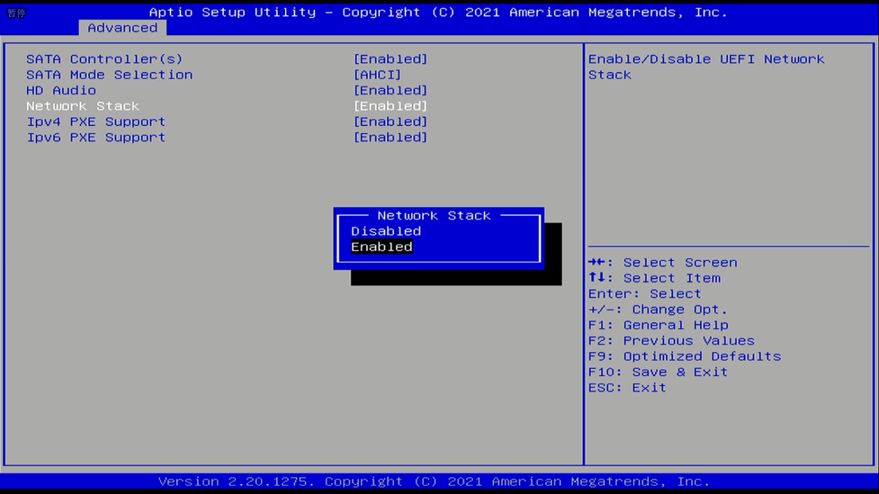 Advanced---System Devices Configuration---IPV4 PXE Support