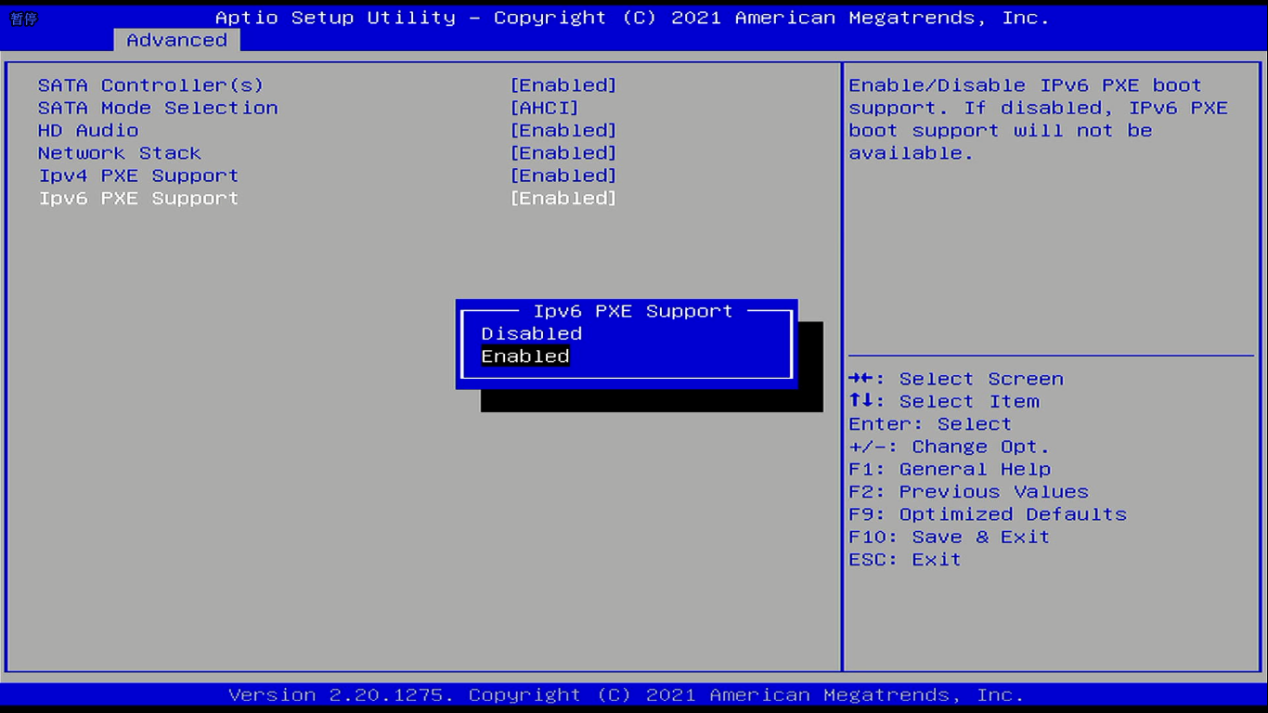 Advanced---System Devices Configuration---IPV6 PXE Support