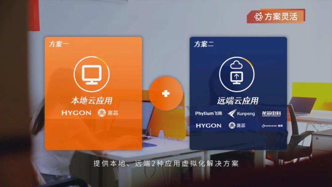 噢易云应用适配主流国产芯片和操作系统,并根据用户使用国产芯片的情况,提供本地云应用和远端云应用2种应用虚拟化解决方案,满足用户多场景应用需求