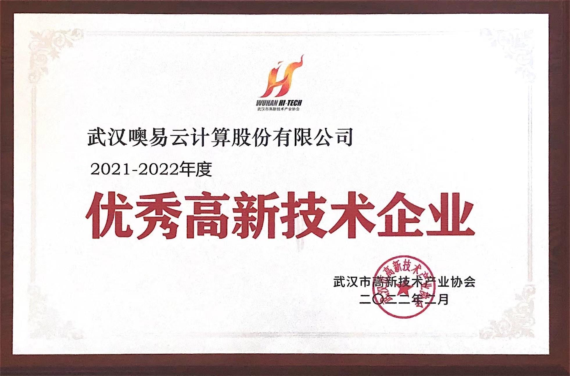 近日,武汉市高新技术产业协会公示了“2021-2022年度年武汉市优秀高新技术企业名单”,遴选出一批创新能力突出、量质齐升、发展迅速的优秀高新技术企业。武汉噢易云计算股份有限公司凭借强劲的发展势头和企业综合实力连续两年荣获武汉市优秀高新技术企业。