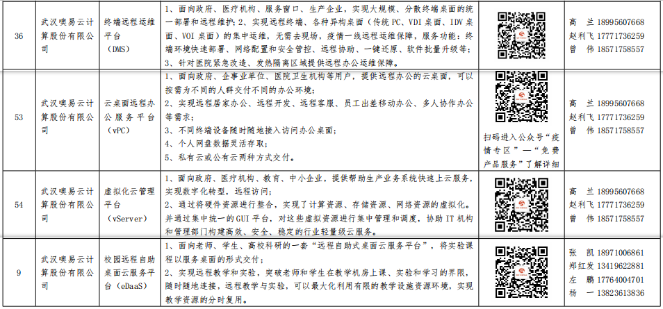 2020年2月27日湖北省经济和信息化厅公示了 《省经信厅办公室关于公布第三批免费云产品和服务目录的通知》,其中 噢易云的校园远程自助桌面云服务(eDaaS)、终端远程运维平台(DMS)、 云桌面 远程办公服务平台(vPC)、虚拟化云管理平台(vServer)四款产品在全国数千家优秀企业中脱颖而出,成功入选!