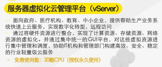 1) 面向政府、医疗机构、教育、中小企业,提供帮助生产业务系统快速上云服务,实现数字化转型,远程访问;