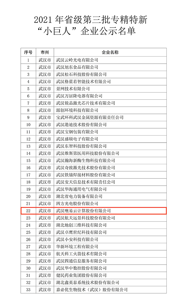 噢易云入选2021年湖北省第三批专精特新“小巨人”企业名单!