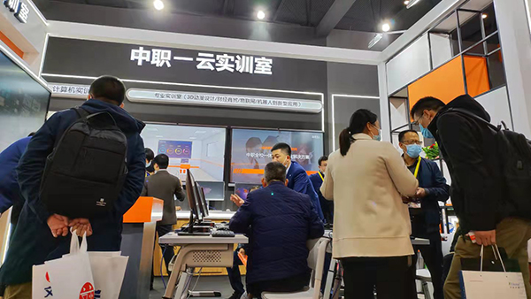 智慧物联教室现场互动讲解区(图) (一批又一批老师至智慧物联教室现场互动交流,了解新一代信息技术在教室基础设施中的应用) 三、云实训室,提供更便捷的实训教学体验 职业教育是国民教育体系和人力资源开发的重要组成部分,肩负着培养多样化人才、传承技术技能、促进就业创业的重要职责。大力提升中等职业实训教学质量,建设高水平专业化中职云实训室大有可为。 噢易中职云实训室方案采用VOI架构云桌面,实现云端管控,计算转移,应用于计算机公共实训室、图形设计类实训室、财经商贸类实训室、创新型应用(物联网、工业机器人、虚拟仿真、虚拟现实)实训室等环境,协助构建理实⼀体化教学场景,为师生提供流畅的实验实训使用体验。