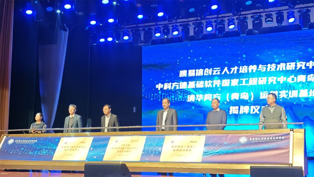 开幕式上,武汉噢易云计算股份有限公司副总裁朱鹏和其他合作技术支持单位负责人共同为噢易信创云人才培养与技术研究中心、中科方德基础软件国家工程研究中心青岛实训基地、清华同方(青岛)运维实训基地揭牌。
