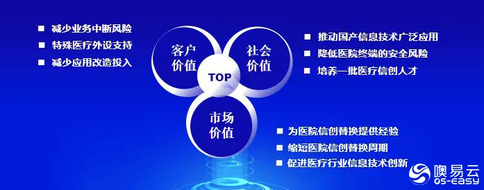噢易云作为可信的桌面云技术和方案提供商,致力于通过云计算、桌面虚拟化、分布式计算、边缘计算等技术的创新研发,为教育、政府、企业、医疗、金融等行业用户,提供融合桌面云、云上云、信创云、终端桌面运维等系列软件产品,以及云终端、云服务器系列品牌整机硬件,以“一朵云 覆盖行业全场景桌面需求”的交付理念,为客户提供全场景深度融合的软硬件一体化群组解决方案。未来,噢易云将始终以用户需求为核心,深耕医疗信息化领域,进一步优化和扩展前沿技术在医疗行业的应用,推动医疗行业的信息技术创新,助力行业完成全信创替代的目标。
